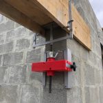 Positionnez un module de fixation Linttor sur chaque jambage. Les modules de fixation Linttor sont autoportants et légers, il suffit de les positionner entre 20 et 30 cm sous le trait puis effectuer le serrage à la main.